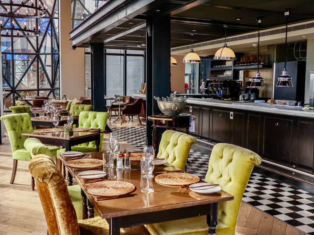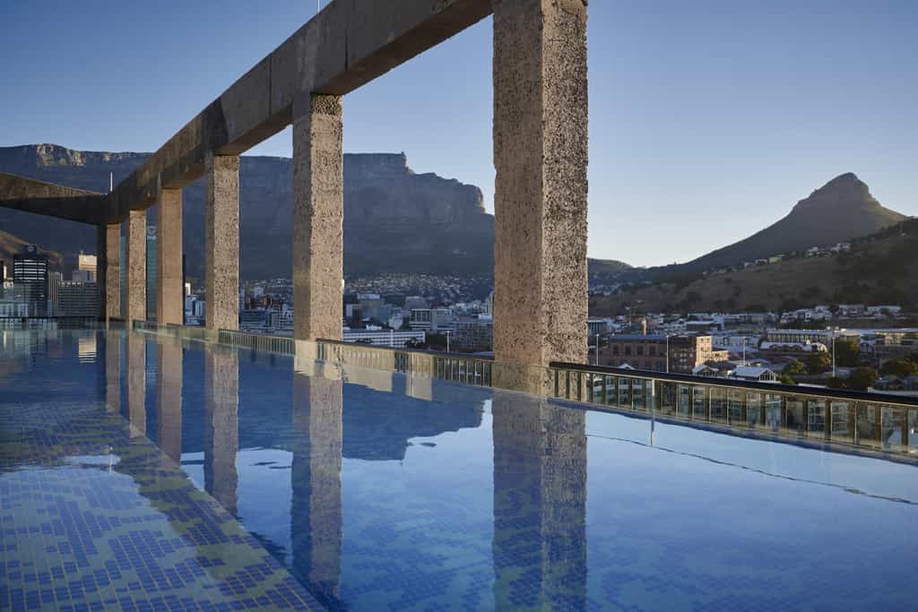 The ground floor of the building, is an immense hall with an industrial-style feel, and houses the Zeitz MOCAA. The original elevator shaft has been transformed into a futuristic-looking atrium rising up through the centre of the tower to the floors above, where the hotel is based. With a spa, fitness centre and several stylish bars and bistros, the Silo has it all. At the top of the hotel is a rooftop restaurant and glass swimming pool, with a Sky Terrace overlooking the city and harbour.