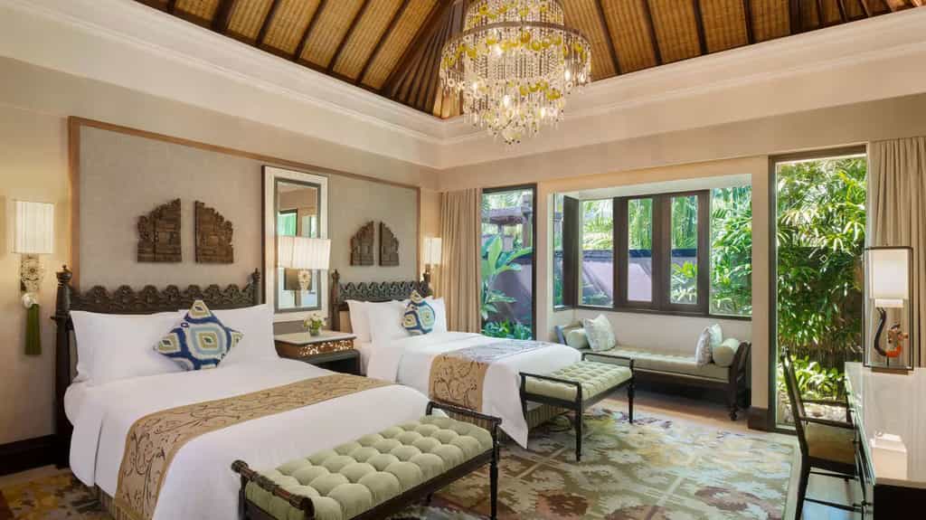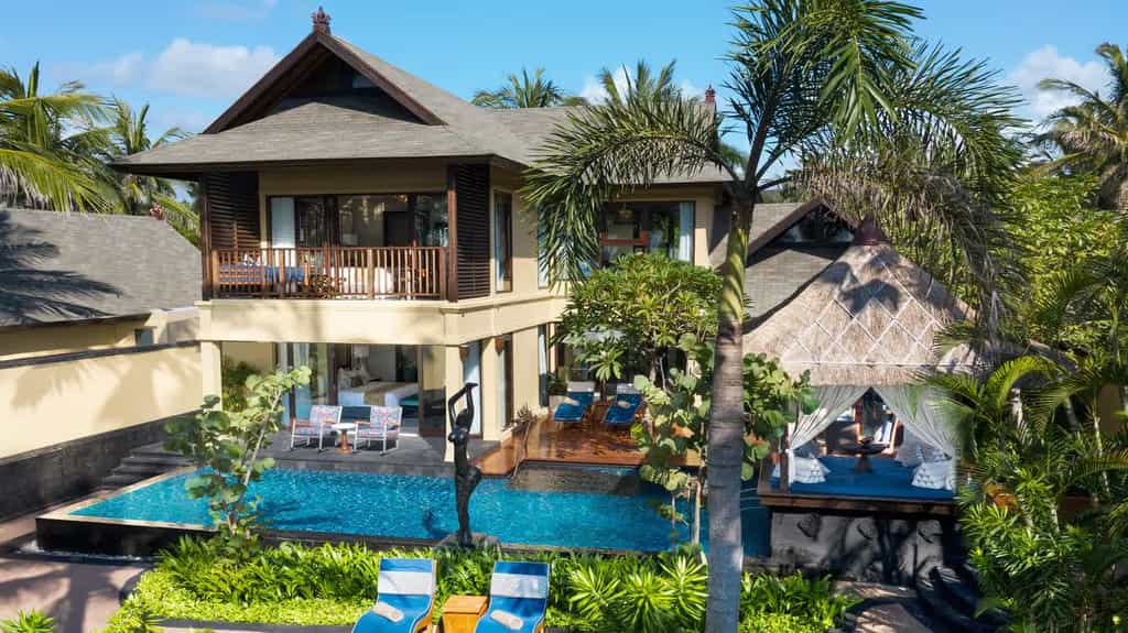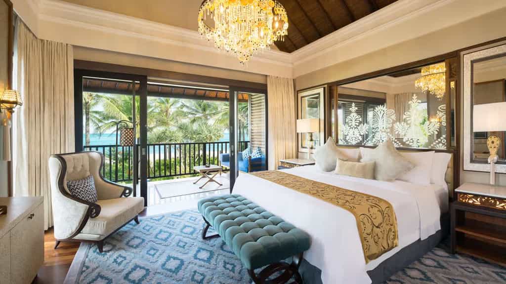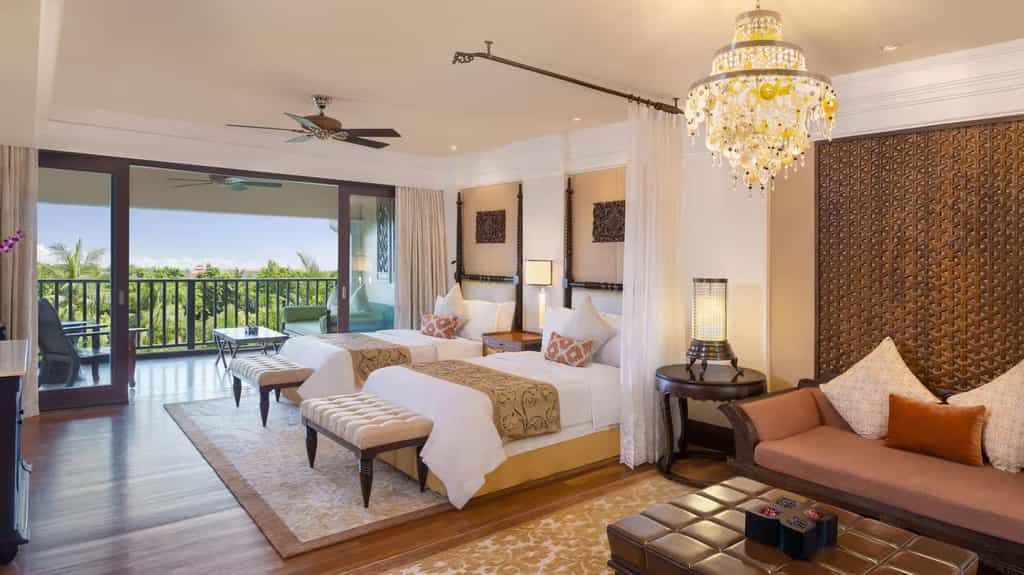 The St. Regis Bali Resort is nestled on the serene and spectacular Nusa Dua beach with its golden sands stretching on seemingly endlessly. The island home’s profoundly special beauty, creativity and spirituality are proudly celebrated at the luxury beach resort. You’ll feel it from the moment you enter the lobby, where a musician strums a traditional rindik - a staple at Balinese celebrations. Those are evident each evening when a dramatic fire dance performance takes place at sundown by the Grand Staircase. The Nusa Dua, Bali, hotel's spacious rooms, suites and villas include outdoor space and provide garden, pool or beachfront views – with Villas and Residences with direct access to the beach.