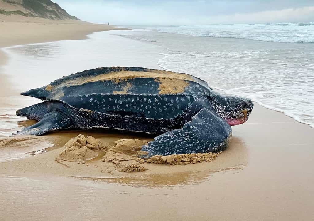 Hippos share beaches with turtles while whales dance beyond coral reefs in this coastal gem.