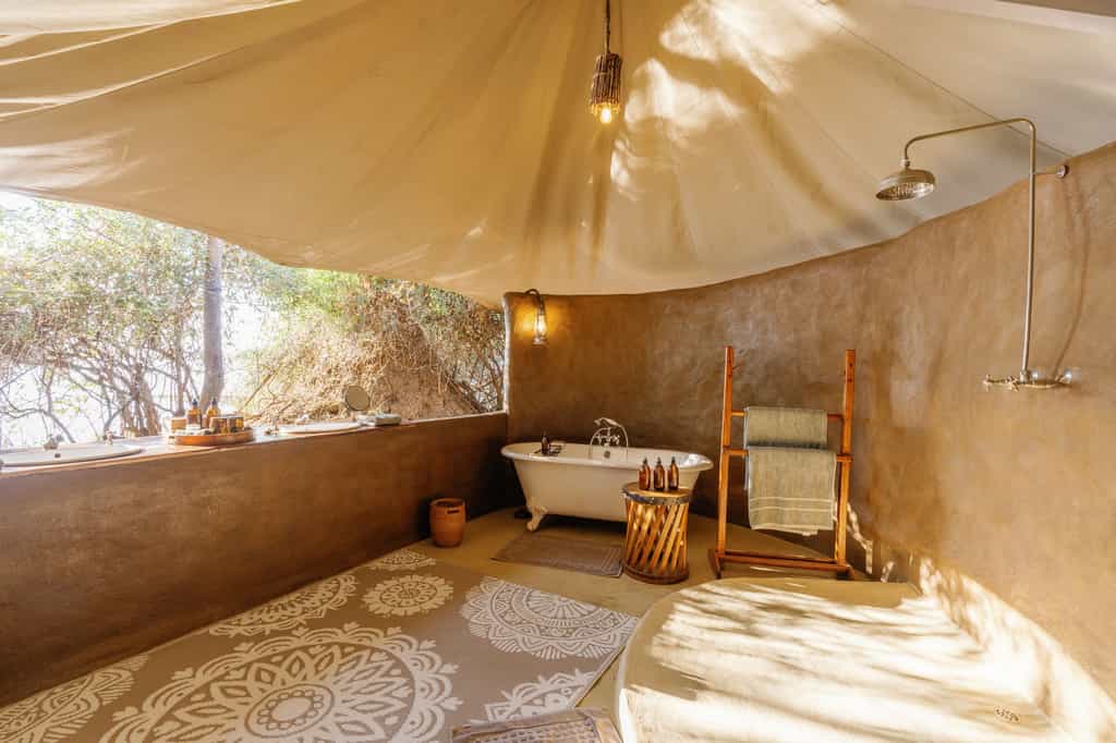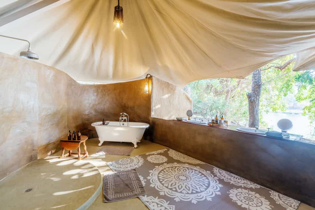 Both suites blur the boundaries between outside and in. The Cassia cocoons couples in an elegant bedroom that spills into a canopied lounge, while the Albida spreads between two octagonal bedroom tents on either side of a private living area. Open-air bathrooms feature Victorian clawfoot tubs positioned for river views – nothing quite like a bubble bath while fish eagles call overhead. Handcrafted furniture from fallen winterthorns and local textiles add authentic touches without trying too hard. Each suite's plunge pool faces the river and your butler appears with sundowners at the perfect moment.