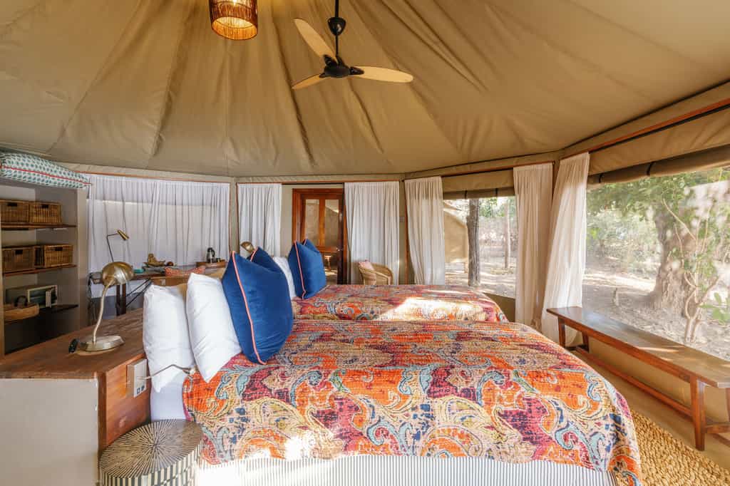 Open-air comfort defines the communal spaces, where canvas awnings and river breezes replace walls. The main lodge serves up Italian-Zambian fusion around communal tables that spark safari stories between strangers. A sandy firepit beckons for nightcaps under spectacular starry skies, while the swimming pool offers respite from the heat. The photography hide draws serious and budding shutterbugs intent on spying wildlife totally undetected. Everything feels intentionally unhurried here, from leisurely brunches overlooking wallowing hippos to afternoon tea where vervet monkeys try and sneak a banana.