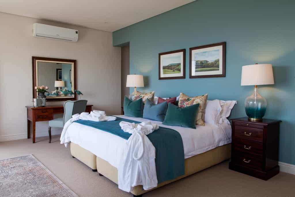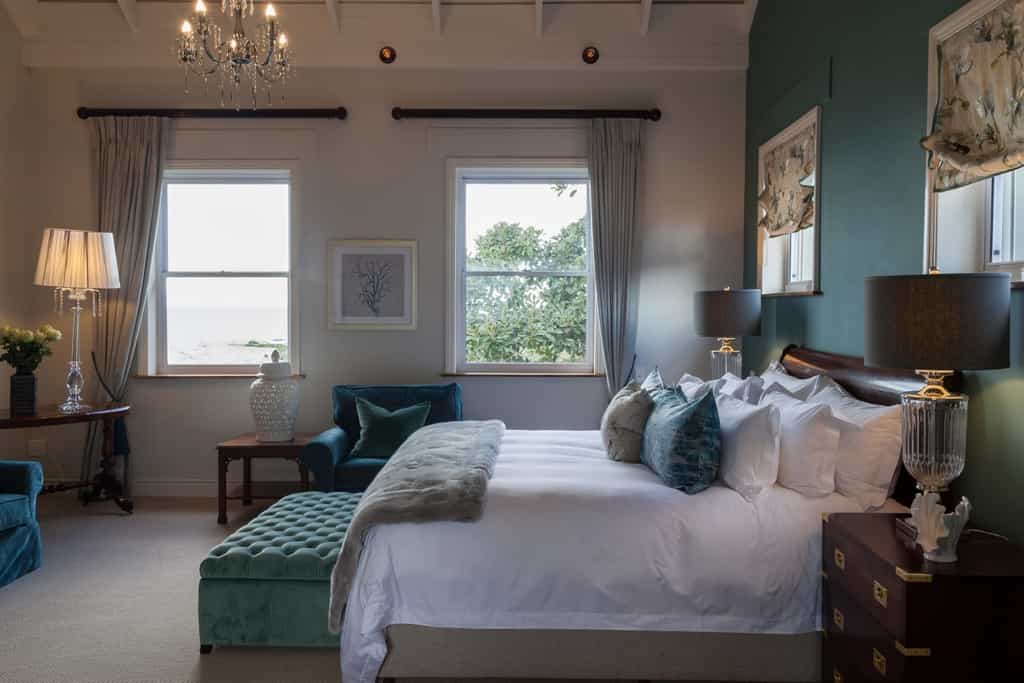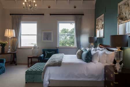 The villa's nine luxurious suites and one children’s room accommodate 20 guests in total. Each is uniquely decorated and, true to the location near Simon's Town's harbour, named after a famous ship that sailed the Cape seas. The rooms are generously furnished, from their king-sized beds to their large armchairs, antique dressing tables and thick carpets underfoot. Some have private balconies with additional seating, and all have deliciously modern en-suite bathrooms. The villa may be booked on an exclusive-use basis.