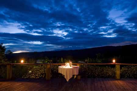 There are 24 spacious, colonial farm-style cottages and 12 rooms in the main house. Interiors are minimal and uncomplicated, with tiled floors, white-washed walls, comfortable chairs and a coffee table. Four-poster beds with mosquito nets serve as a welcome comfort at the end of a hard day’s exploration. The private veranda is a great place to put your feet up and take in the views of the functioning farm and the distant Highlands.