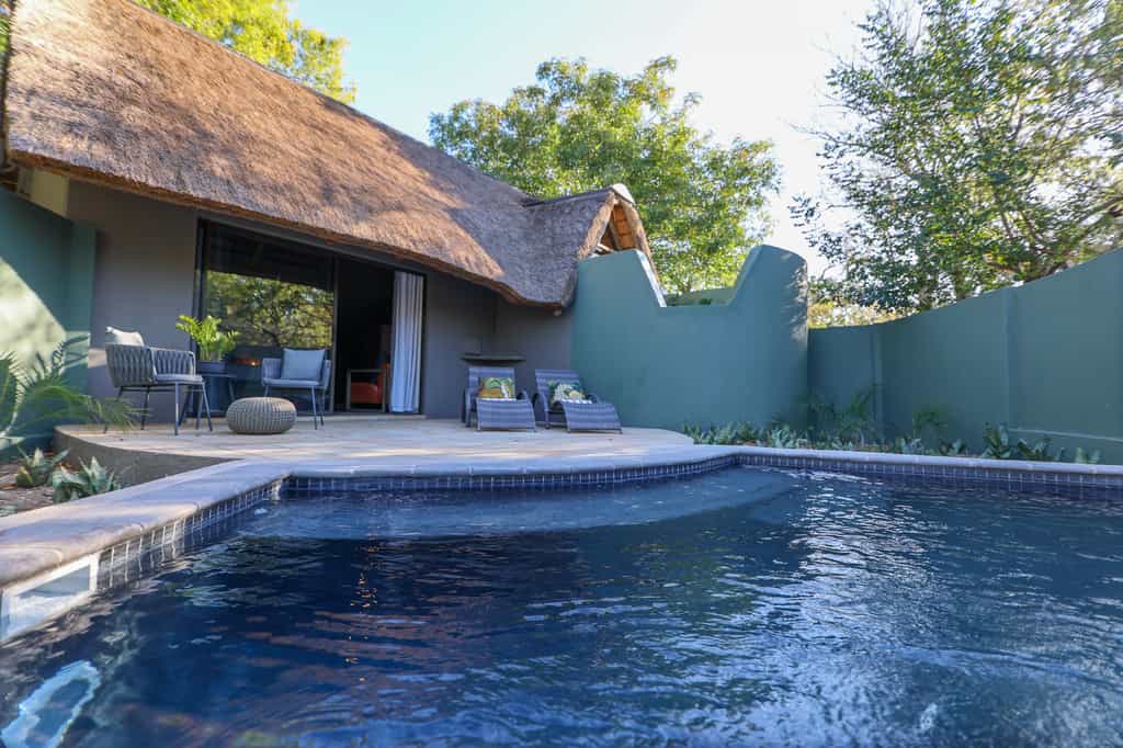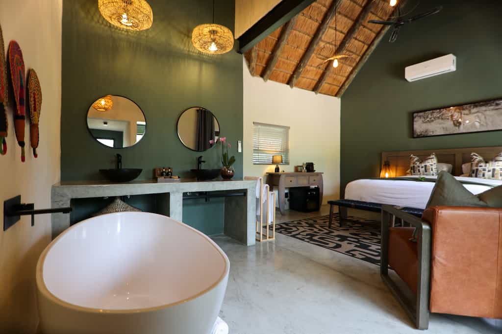 The nine chalets channel the warm aesthetic of traditional South African farmhouse style, with thatched roofs lending authentic character. Each accommodation opens onto the central garden, creating a village-like atmosphere while maintaining privacy. Inside, expect all the modern conveniences—air conditioning, ceiling fans, and complimentary WiFi—alongside thoughtful touches like reusable water bottles and plug adaptors. The superior and honeymoon chalets offer extra space and seclusion, perfect for couples seeking romance amid the wilderness. Nightly turndown service and daily cleaning ensure everything remains immaculate during your stay.