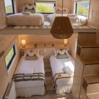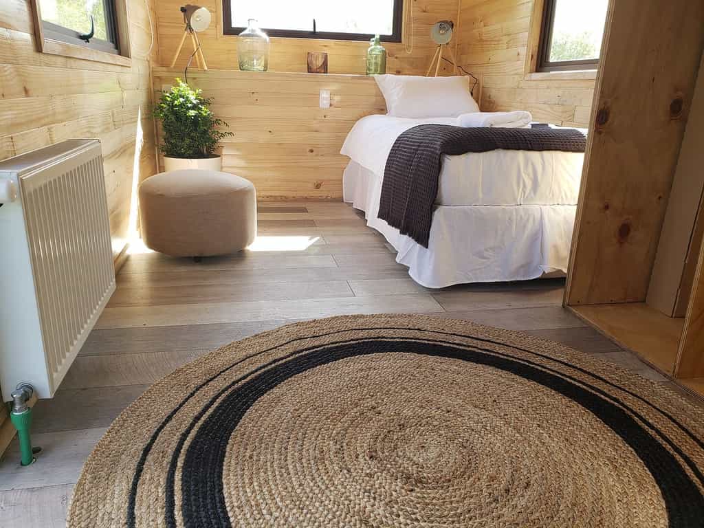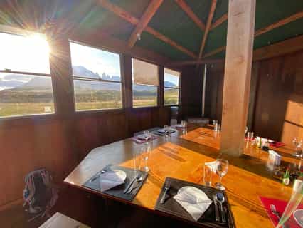 The "Tiny House" wood-style cabin is situated near Laguna Amarga sector of Torres del Paine National Park, one of the most popular viewpoints of the Paine Towers. Staying there is all about the experience, adventure-and-chill. You have the comfort of a hotel yet you have the views of the mountain and the trees and wildlife. The cabins have centralized heating and shower. And all meals are included in their price and provided by the kitchen team on a separate hut.