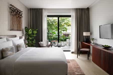 Beautifully done in tropical hardwood furnishings and moss-coloured marble floors, Treeline's rooms are understated yet luxe. Local artists are well-represented, and all rooms have pretty ceramics and wall installations. Some rooms enjoy a private balcony, while others have banquette seating beside the huge picture window. Across the board, amenities include a pillow menu, glass bottles of water and aircon, while the Junior Suites enjoy a deep terrazzo bathtub, and the Executive Suites boast their own living and dining area.