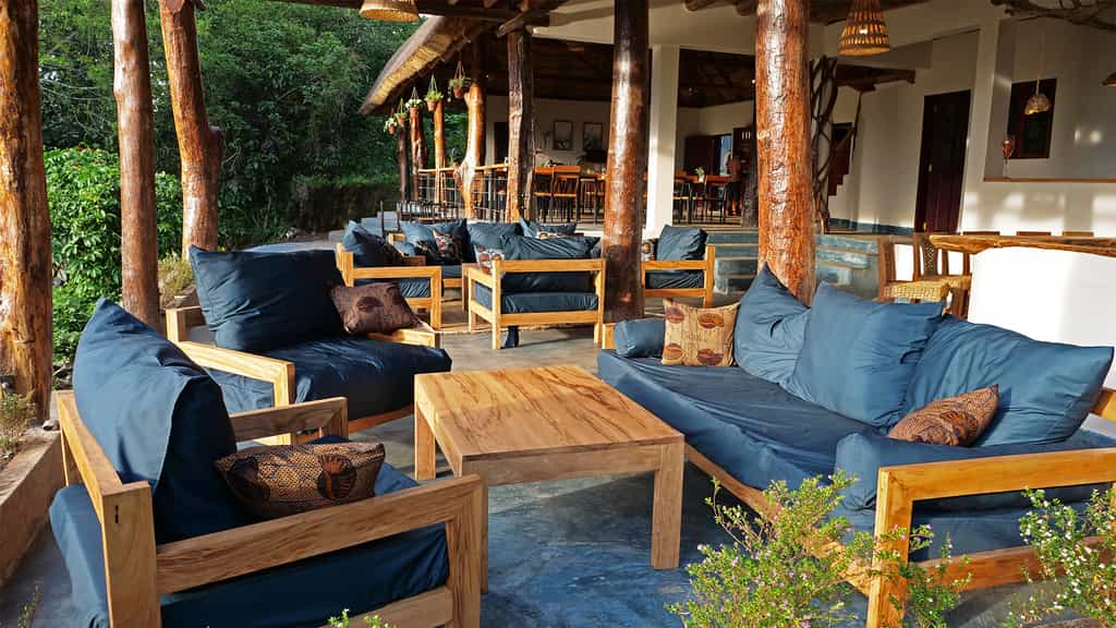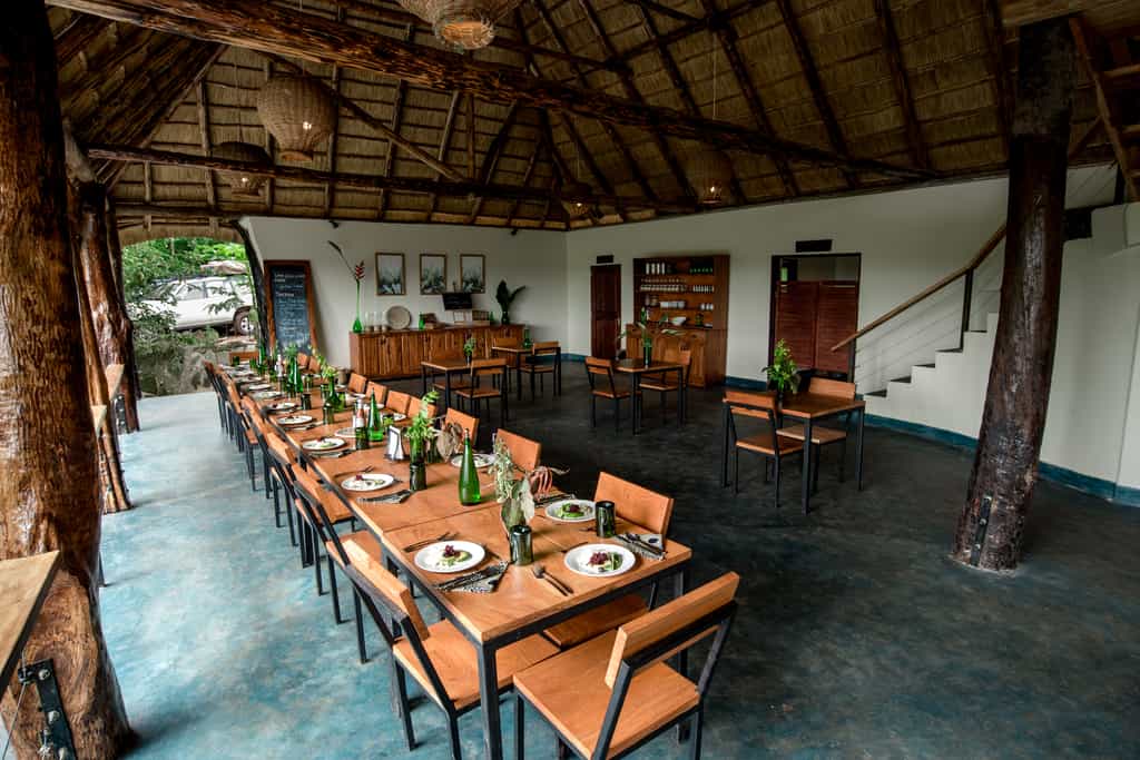 A rustic, characterful structure with a peaked roof, tall windows and a broad deck, the main area houses the restaurant, a lounge area with a fireplace, a bar, and a first-floor lounge with spectacular views over the forest and theRwenzoris. Meals are very good, and the bar is well-stocked. After a day out, it's the ideal spot to sip an ice-cold local brew and watch the sun set. Also here are free wi-fi and charging docks.