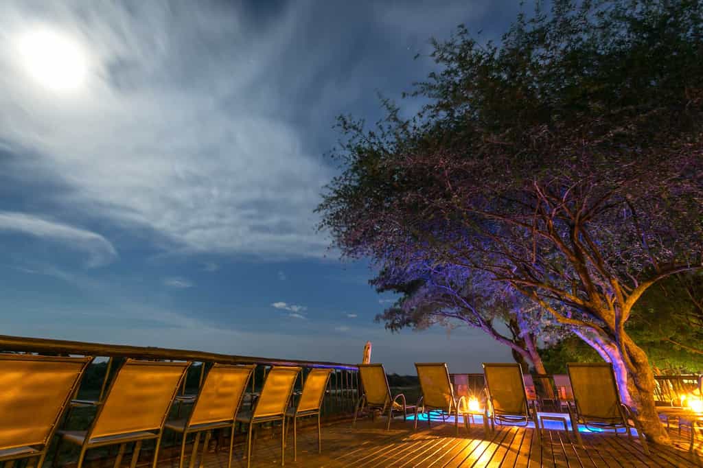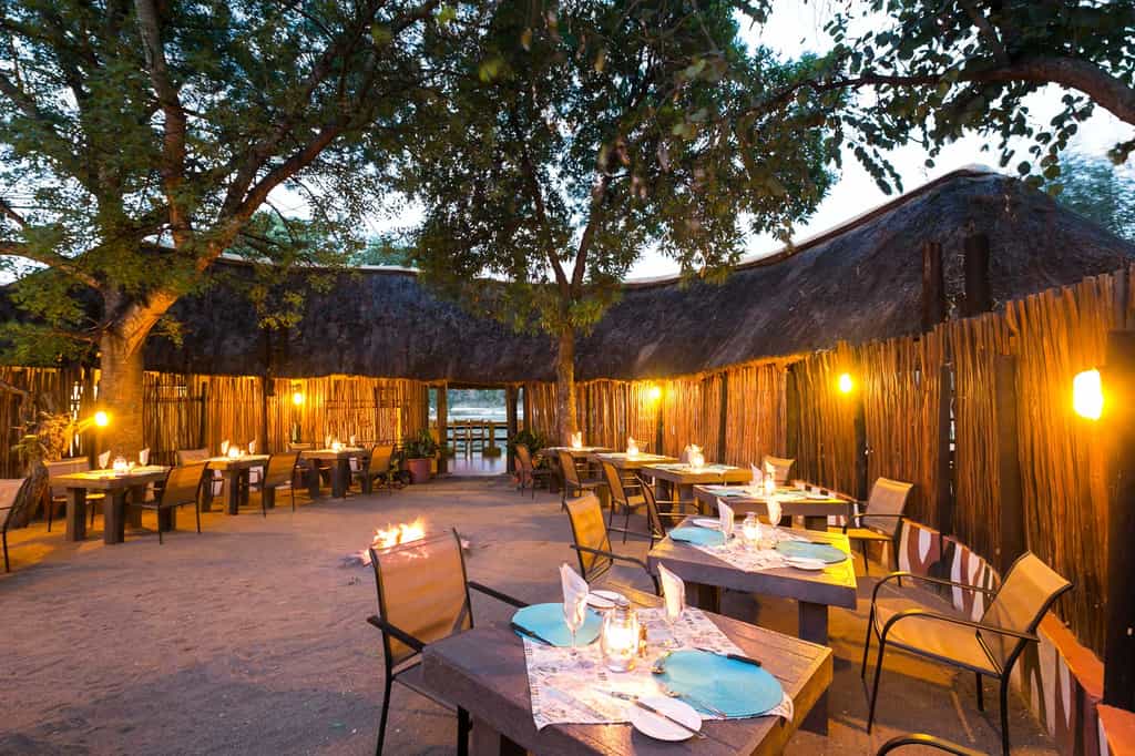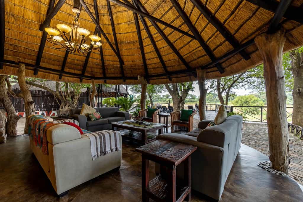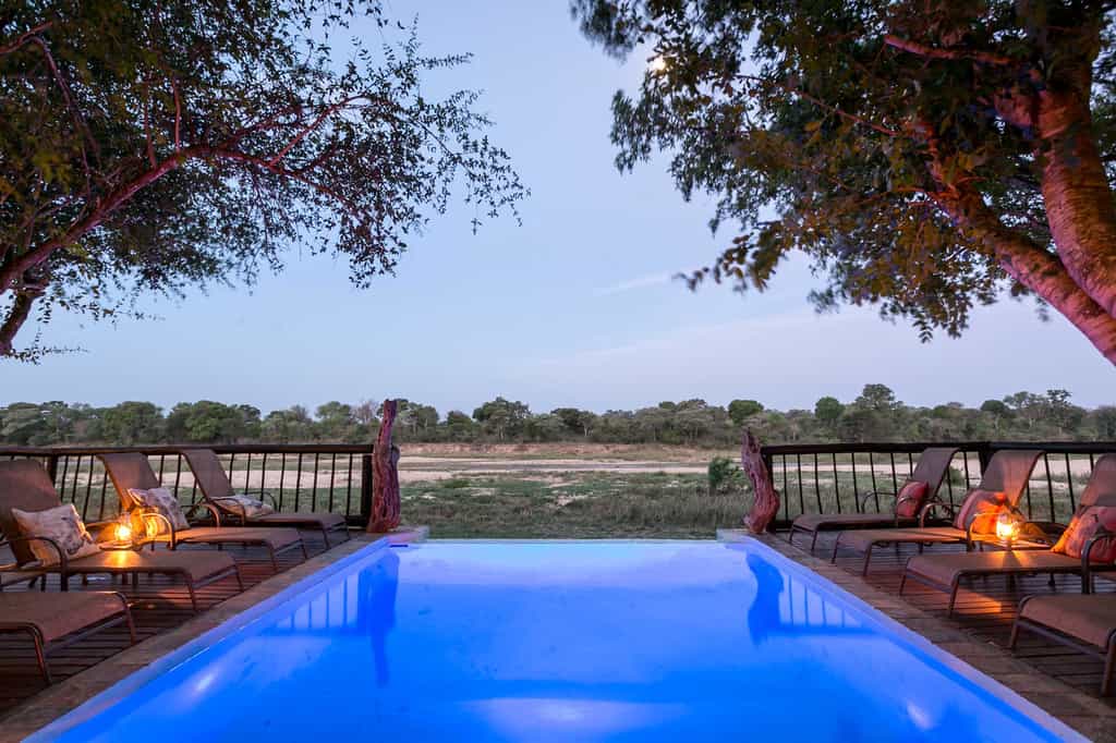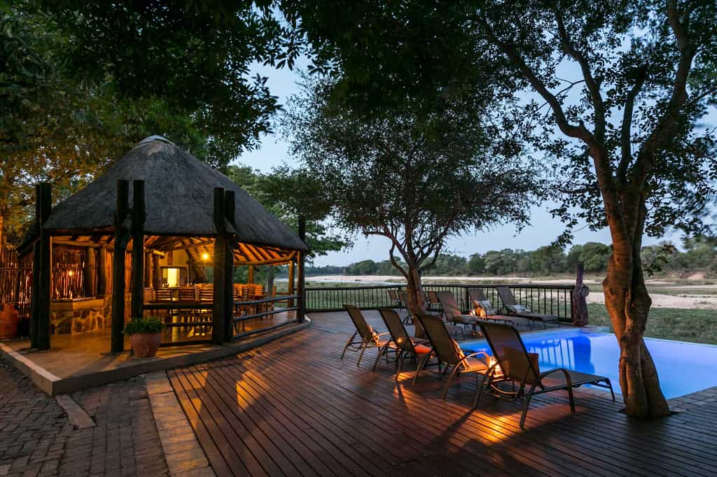 The river is the focal point of the entire lodge, with unobstructed armchair game viewing from all corners. And there are plenty of nooks in the thatched lounge in which to hide with a book and your binoculars. Meals are often eaten on the deck – under dappled shade by day, in the glow of candle light by night. Cultural evenings take place beside a roaring fire in the traditional boma area. For hot afternoons, the pool is the spot!
