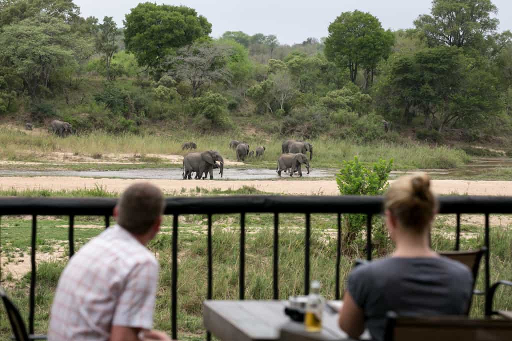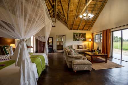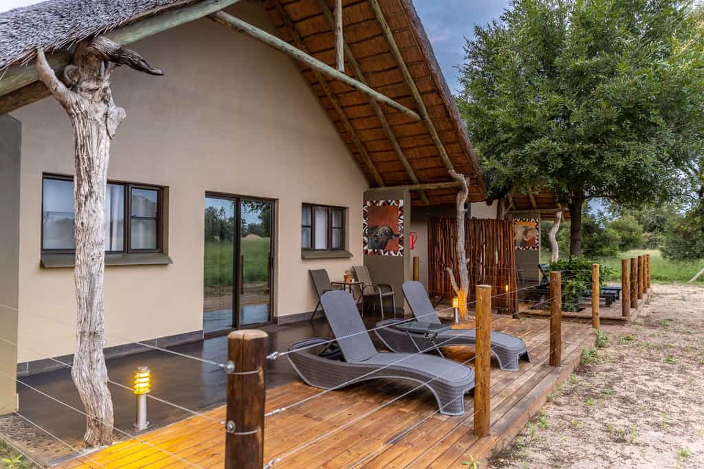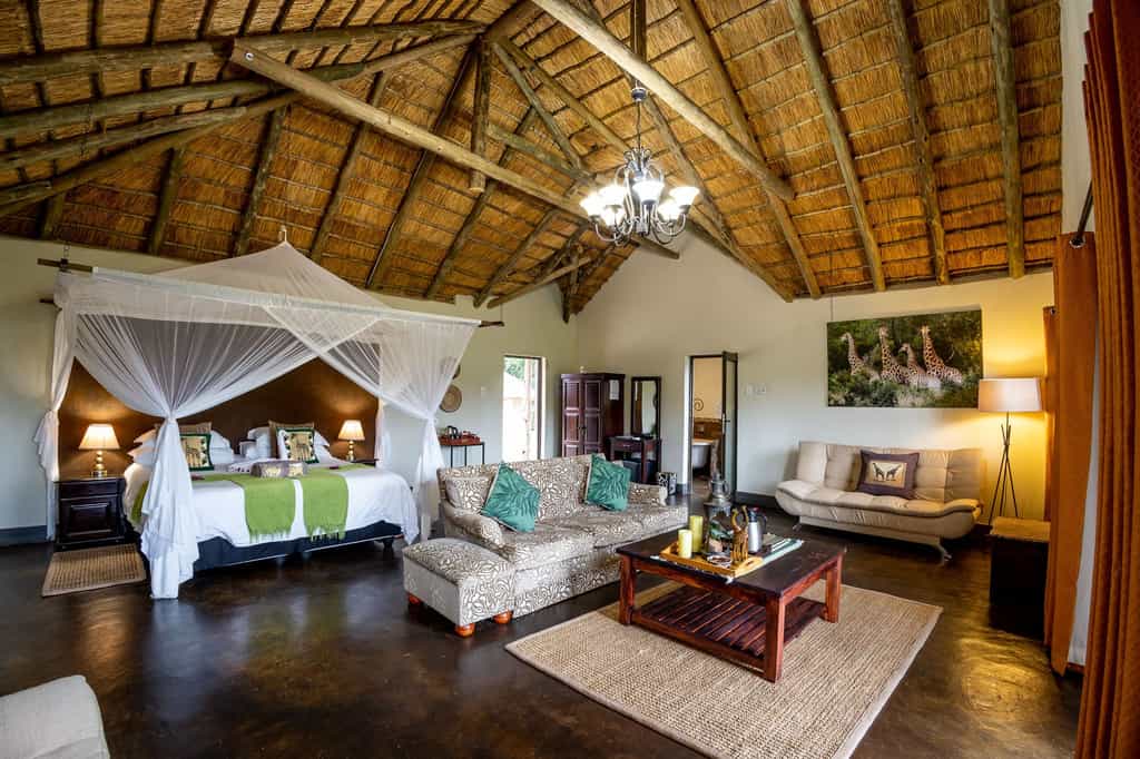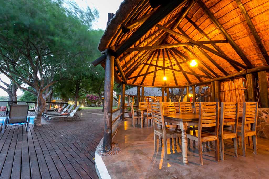 The river is the focal point of the entire lodge, with unobstructed armchair game viewing from all corners. And there are plenty of nooks in the thatched lounge in which to hide with a book and your binoculars. Meals are often eaten on the deck – under dappled shade by day, in the glow of candle light by night. Cultural evenings take place beside a roaring fire in the traditional boma area. For hot afternoons, the pool is the spot!