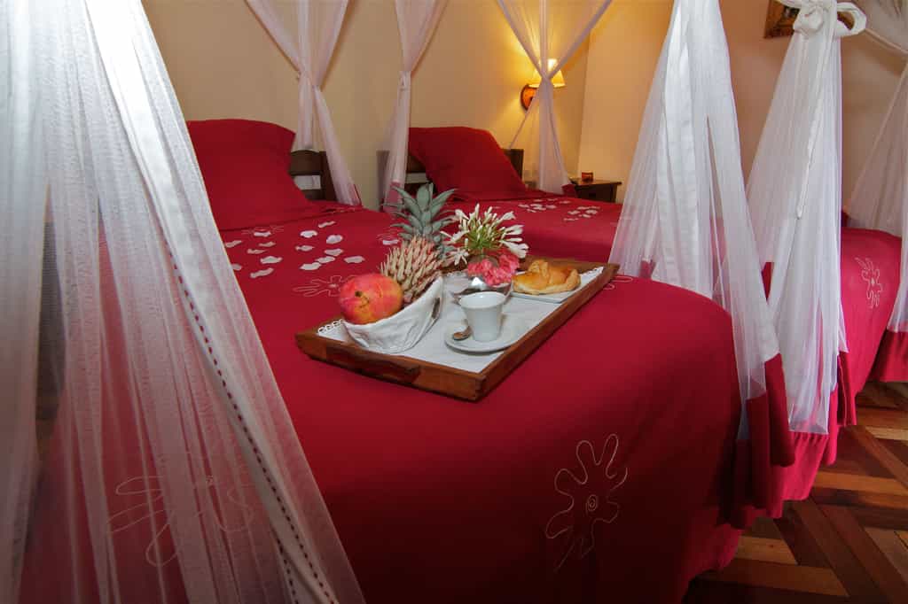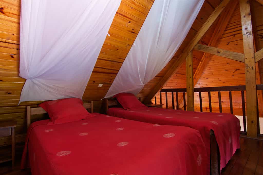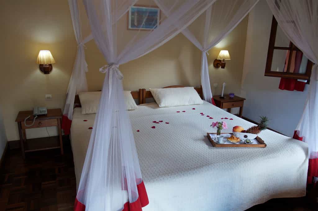 The reception area, bar and large dining room are octagonal, with balconies on two sides and large windows overlooking the lake. Here, fires are lit at night and first thing in the morning to warm you against the damp. The food is fresh and well prepared, with both Malagasy and Western dishes. Upstairs is a gift shop and, for down times, there's a pool table, table tennis and a good lounge with TV. Wi-Fi is available, as is a pool.