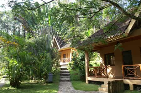 Of the 28 pretty bungalows spread around the main complex, eight are doubles, seven sleep three, three have twin-bed accommodation and 10 can sleep families of four. All are clean and comfortable, with humidifiers (usually on when you arrive) to clear the rainforest damp. The beds are large, the mosquito nets are ample, the en-suite bathroom has a heater for drying towels and the small veranda outside is great for early-morning coffee. The decor is slightly dated, but perfectly adequate.