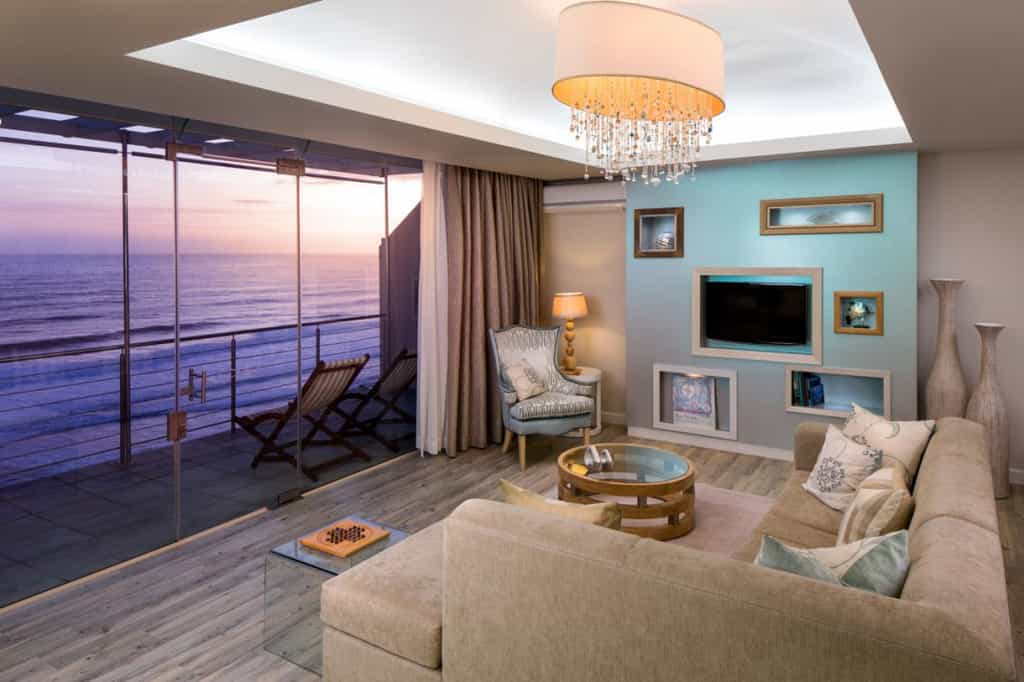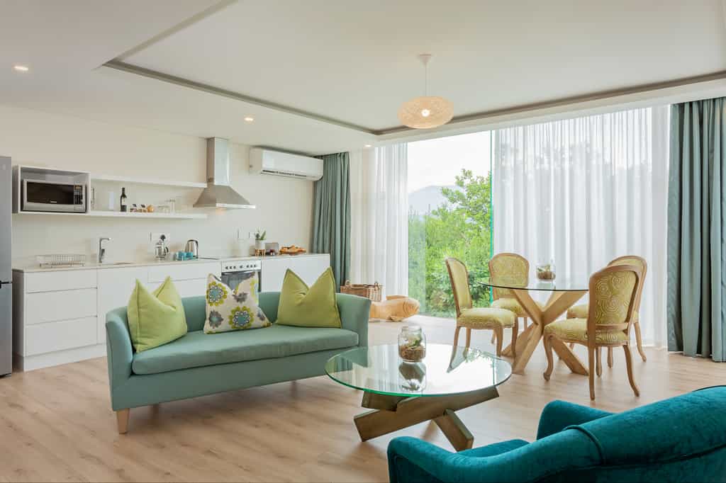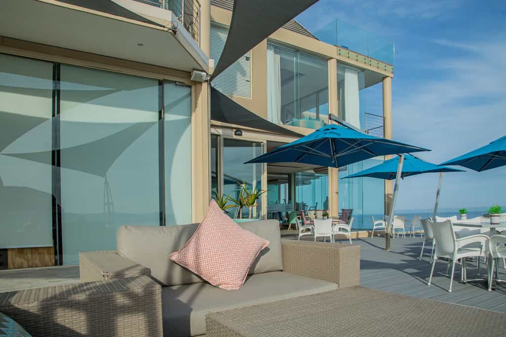 The 26 suites, some facing the sea and others the mountain, dunes and town, are beautifully decorated in ocean shades. Sea-facing rooms and suites (these are larger, and feature deep bathtubs) have balconies overlooking all that blue. Rooms with partial sea/dune views are spacious; suites overlooking the forested dune and town (an outlook that's really charming) are similar in size to their sea-facing relatives. Rooms facing the Outeniquas have no balcony, but are lovely nevertheless. There''s also a self-catering unit.