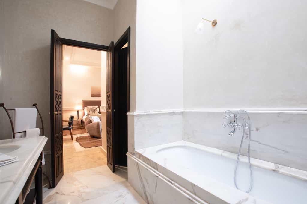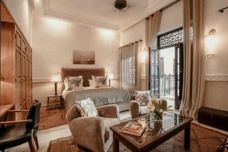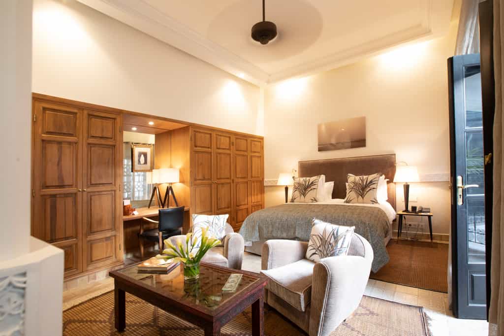 The rooms at La Villa are classic and clean with plenty of dark wood furnishings and silk scatter cushions. They range from courtyard rooms to a Master Suite with a private balcony, living room and walk-in closet. The bathrooms are chic with marble finishes, twin basins and luxury amenities. If you have a larger group or fancy the added privacy, book the exclusive riad with two bedrooms, an alfresco dining area and living room, and a private pool. All rooms also have high-speed Wi-Fi, a Nespresso machine and satellite TV.