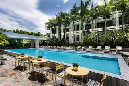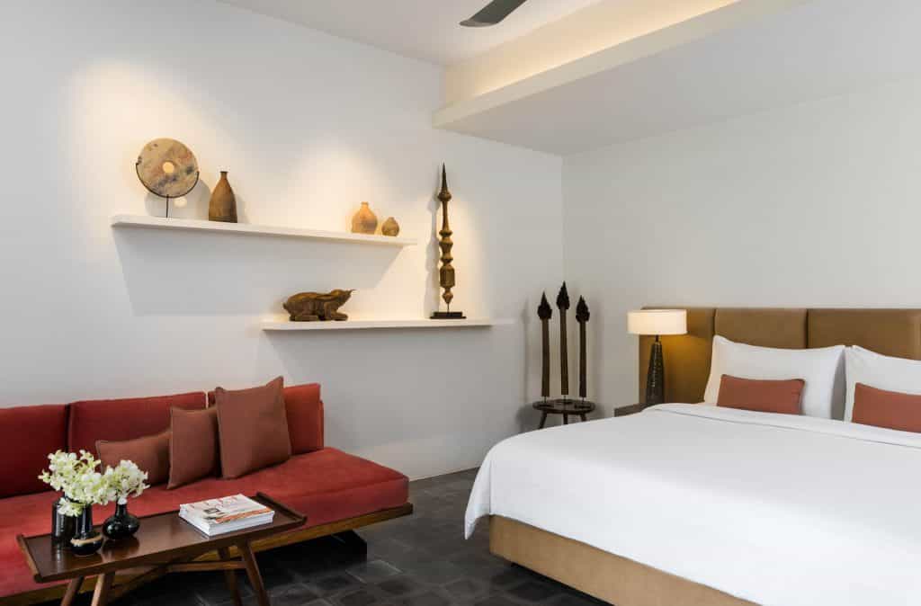 At Viroth's, there's always a choice of outside or inside and dining is no exception. Enjoy zesty Khmer cuisine in the glass-sided restaurant, under soft, floral lamps or al fresco by the pool with the casual bar just next door. Why not inspire your sightseeing with a potent Angkor Fever cocktail? And if you like to recline with a book, the open-plan library has you covered. With a name that means 'tranquility', the spa lives up to it with an array of treatments from honey and mango wraps to a four-hands massage.