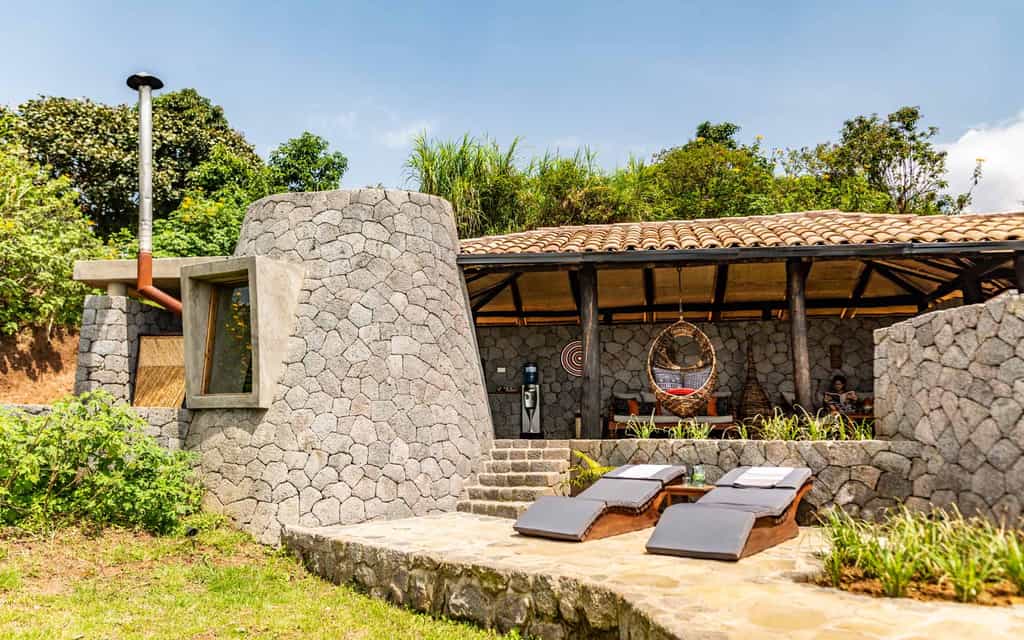 Eco-friendly (and definitely eco-chic), the thatched bandas are hidden snugly amid the tangle of jungle ferns and foliage. There are only ten self-contained bandas (cottages), with hand-carved wooden windows and private verandahs. With no electricity (there is solar power in the evenings), television or radio, and poor mobile-phone reception, it quickly becomes a calm sanctuary from the rest of the world. Each banda has en-suite bathrooms with flushing toilet, double vanity, shower with hot and cold running water. Rooms have mosquito nets, 240v lighting and a private veranda. For those that are desperate to re-connect to the outside world, wi-fi is available in the main lodge building.