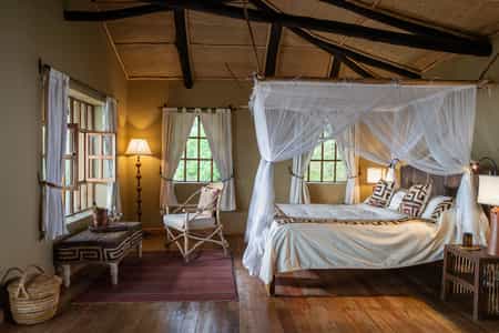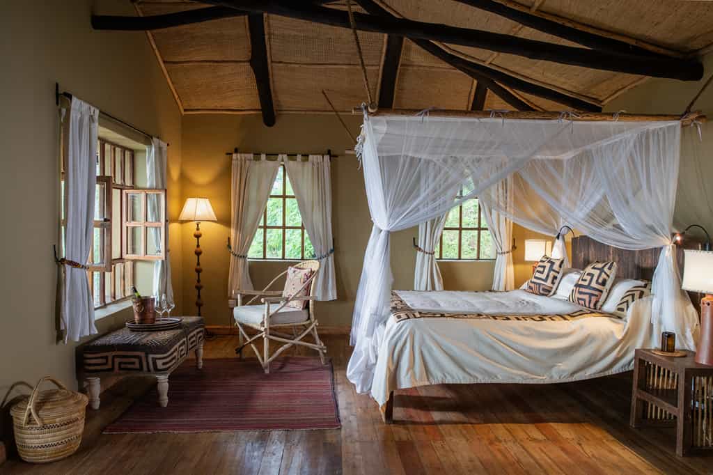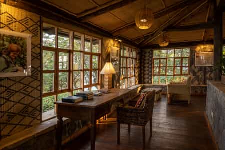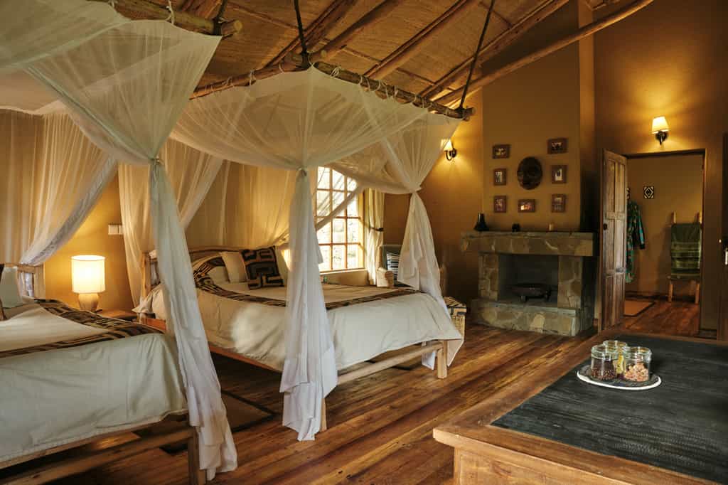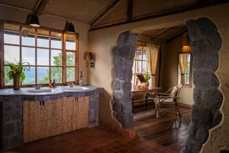 The focus at the lodge is to see the mountain gorillas, which adds a sense of shared purpose to dinner at the candle-lit, communal table. You are typically woken at 5am with a pot of coffee; breakfast is served at 5.30; by 7am you will leave the lodge for the Volcanoes National Park headquarters at the base of the Virunga mountains, where everyone with a gorilla-tracking permit gathers for a briefing. The choice is between an 'easy', 'medium' or 'difficult' trek to see the gorillas, depending where the family groups are located in the forest. An 'easy' trek can take from 30 minutes to an hour, a 'difficult' trek usually three or four hours. There are also guided treks in search of the golden monkeys and hikes to the neighbouring volcano and surrounding lakes.