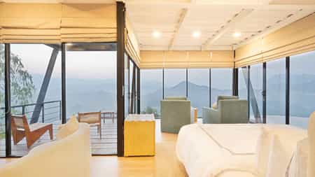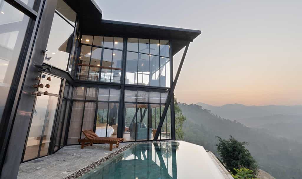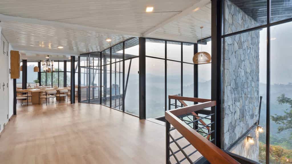 The villa in Ella is complimented with a scenic 270-degree view of the Sri Lankan hill country, a seamless heated infinity pool that adjoins the azure blue sky in a flattering praise of the sensational cool climate, a private helipad for easy access, a picturesque panoramic view of the eye-pleasing fluffy Walaa Kulu by the day, and the shimmering studs of the night sky!