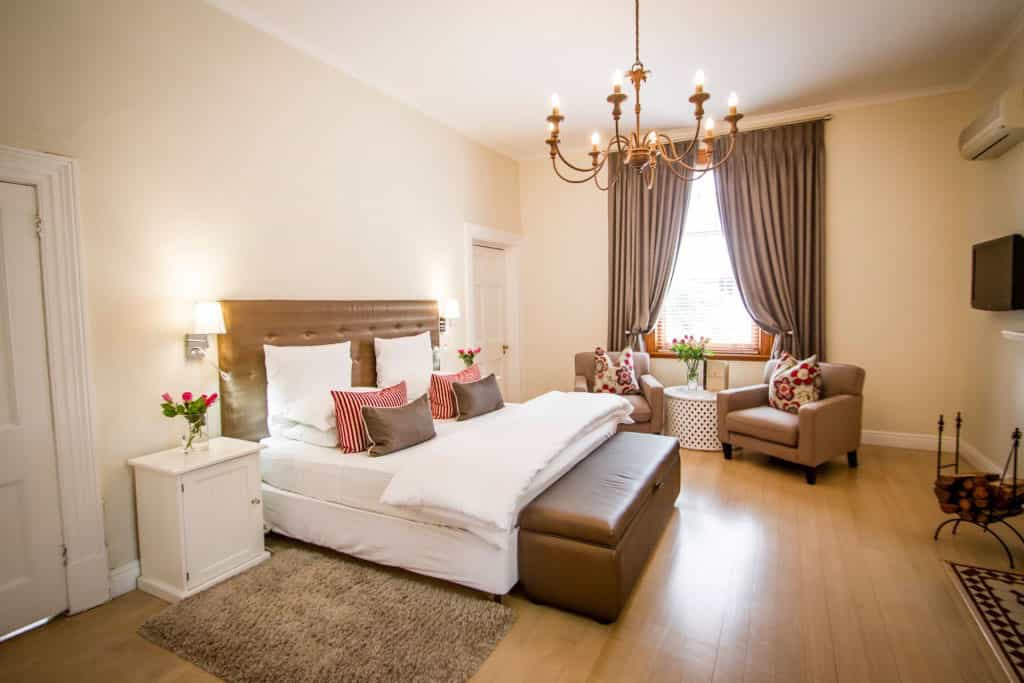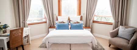 Behind its striking Victorian exterior, Walden House's interiors are sleek and contemporary. You'll notice the light, uncluttered feel when you enter the two guest lounges and dining room. The decor is understated, with earthy tones complementing the warmth of wooden floors, original sash windows, vintage chandeliers and Victorian fireplaces. Breakfast is served downstairs in the cosy dining room, or outside on the patio beside the freshwater swimming pool.