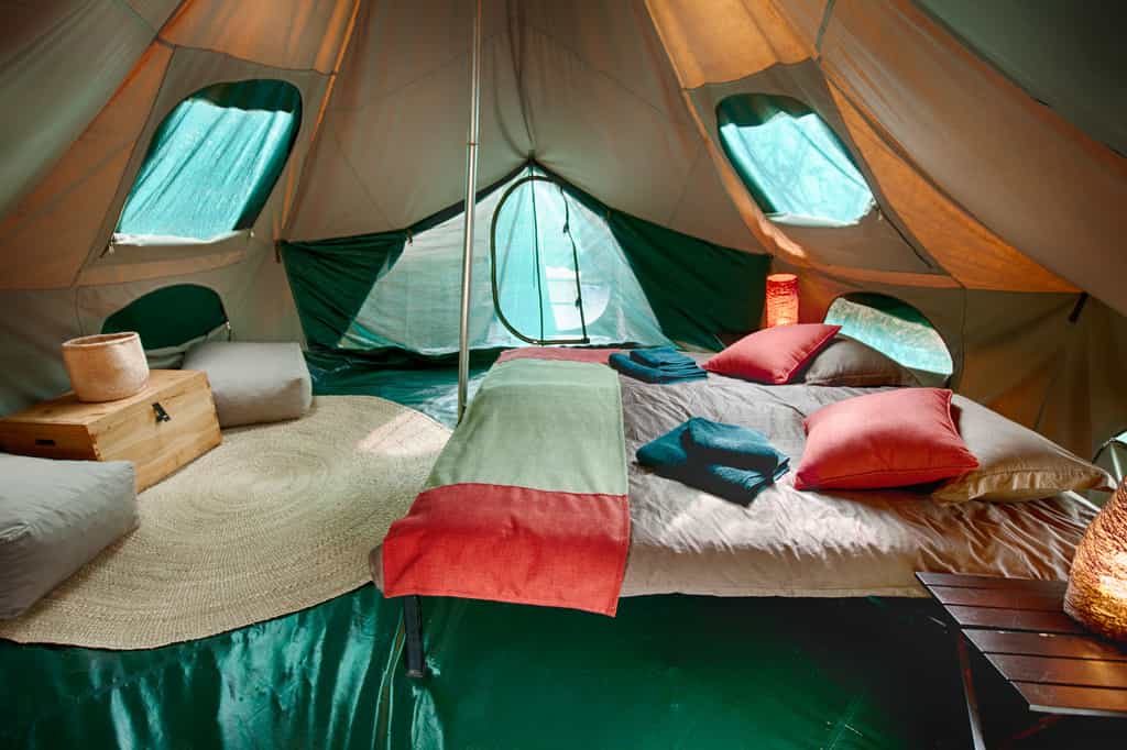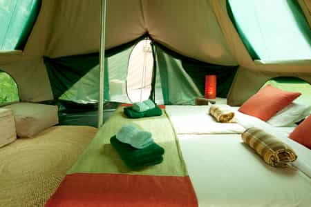 Banagi has just five simple bell tents, all with traditional camping beds (very comfortable ones too!) with crisp, white linens. Makuti-woven mats and handmade side tables are simple but stylish and very functional. Attached to each sleeping tent is a small, private bathroom with a hot water shower, basin and toilet. Again, modest, but perfectly comfortable and you won't have any complaints.