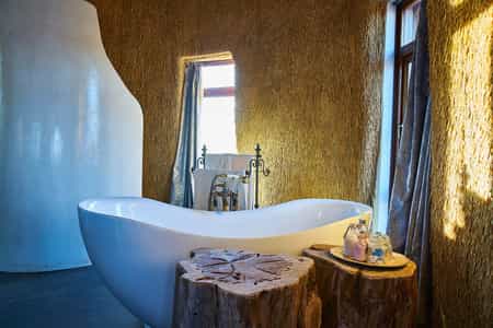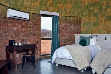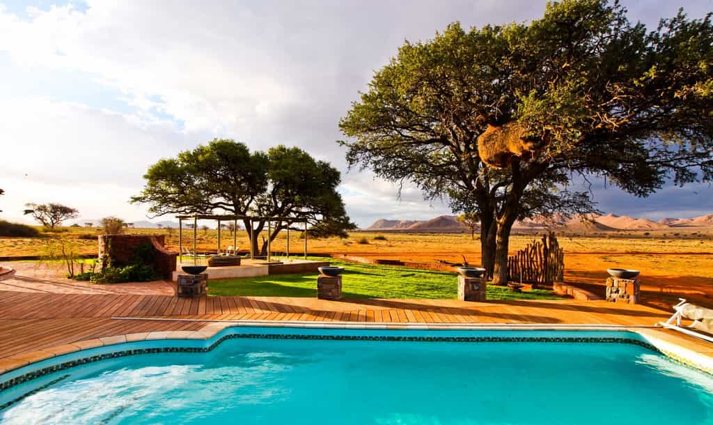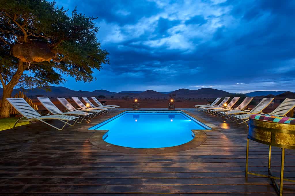 In the native language of the San Bushmen, We Kebi means “invitation”. We Kebi Safari Lodge invites guests to come and experience the solitude and tranquility of the Namibian desert. Experience individual and luxurious accommodation in a real African setting. Each en-suite luxury chalet has its own pavilion and a 180 degree uninterrupted view of the surrounding landscape.