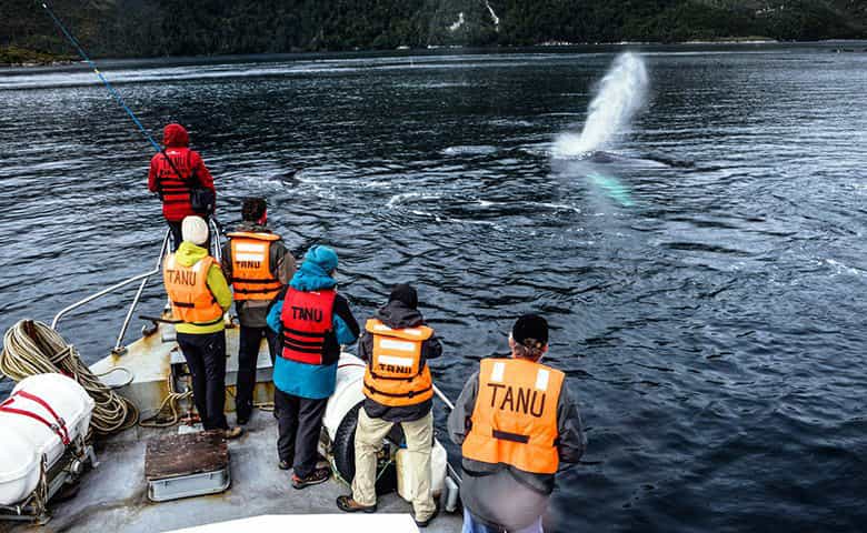 This island tented camp is reached after a 7-8 hour boat trip from Punta Carrera, in the Brunswick Peninsula. You will be sailing on the Magellan Straits, enjoying the scenery and wildlife aboard the M/V Tanu. Just in front of the Eco-Camp facilities, is possible to see passing numbers of Humpback and Sei Whales. The camp’s staff offers a highly personal experience with great food and service.