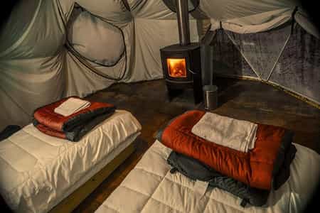 The Eco-Camp has five double domes, three bathrooms and a comunal tent, with a small restaurant and a fire place. This complex is interconnected by an array of elevated boardwalks, built in order to preserve the native vegetation of the island. This small operation is run by Whale Sound, a reputed whale-watching outfitter. They offer this experience to a limited number of people, very keen to do whale-watching and other wildlife as well as to experience the whale science being conducted by the researchers of Whale Sound for over two decades.