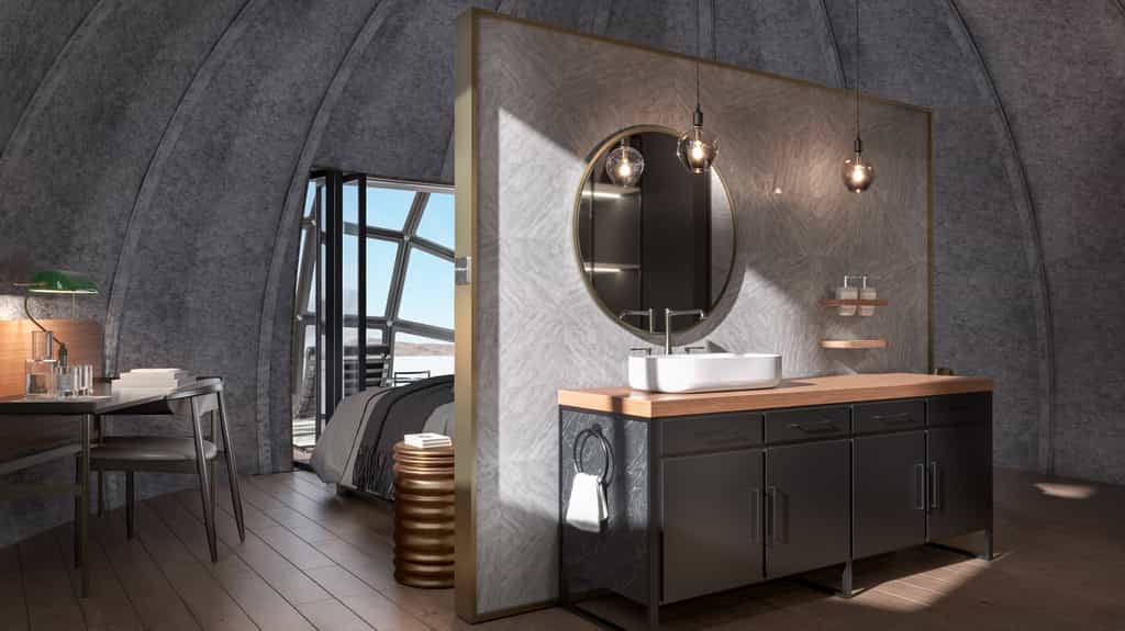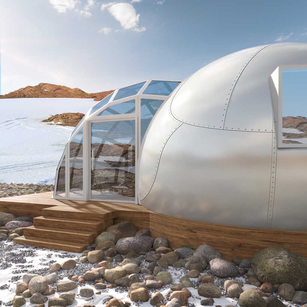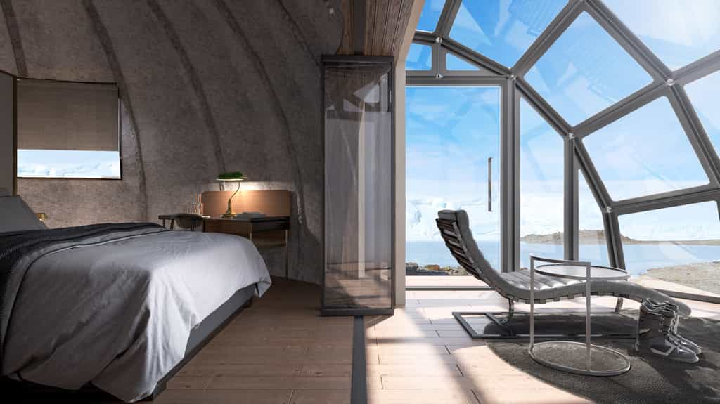Whichaway has three large, interconnected domes where you'll find the lounge, library and dining room. Decorated in shades of slate-grey and indigo, the lounge is dotted with 'explorer' motifs and it's here that you'll hear about early Antarctic adventurers, tuck into a new read, or write a postcard home. Meals are shared with fellow travellers at the large dining table, and chosen from a menu filled with fresh ingredients and wines from the finest Cape vineyards. Take in the view with a cocktail on the deck, and soothe any aching muscles in the sauna or massage pod.