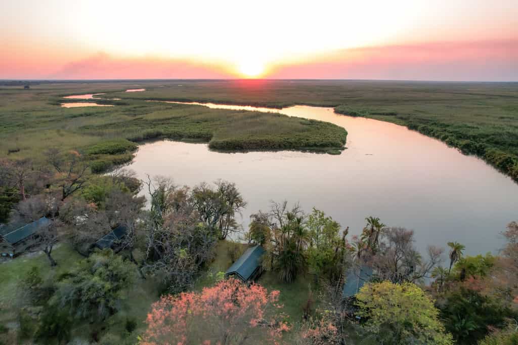 Nestled amongst giant mangosteen trees and accessible only by boat, this Lodge is home to a myriad of birds. The distinctive cry of the African Fish Eagle, White-Backed Night Heron and the elusive Pel’s Fishing Owl make this tropical paradise a must for bird lovers. Watch a breathtaking sunset whilst sipping a sundowner and listen to the call of the wild. After a delicious dinner, sit around the campfire reliving your day, listening out for the call of the wild or marvelling at the splendour of the night sky!