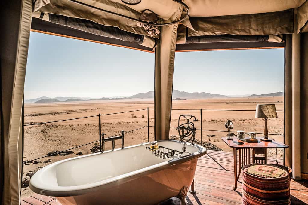 This sophisticated lodge in Namibia's Karas region echoes the camps of those travellers of old – with no expense or comfort spared. Sonop ("sunrise") is a sumptuous experience to be sure, complete with multi-course meals served by white-gloved waiters, and a telescope in your fit-for-royalty tent. You're deep in the empty wilderness here, far from any beaten track (although the best Namibian holidays are meandering). Expect a vast moonscape terrain, sculptural sand dunes, wide salt pans, a star-studded vault of sky, and the romance of raw natural beauty. We call this pure drama, Namib-style.