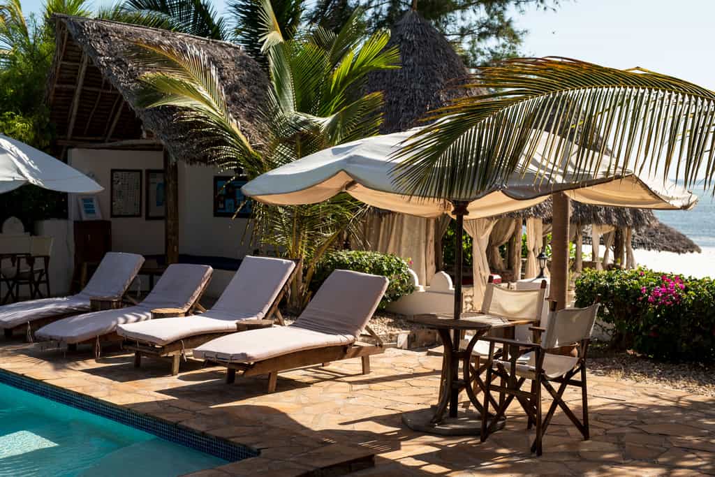 With bright white facades, thatched roofs, limestone patios and lush vegetation, the hotel's grounds are exceptional. Arabian-inspired archways, built-in corners with benches strewn with pillows and inspired details add romance to the atmosphere. Dining happens outside on the patio or in the thatch-roofed restaurant (the seafood is superb), where there's also a small bamboo bar. Parasols and wooden sunloungers surround the large pool, hammocks in the garden are placed to optimise shade and breeze, and umbrella-shaded loungers line the beach.