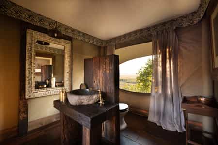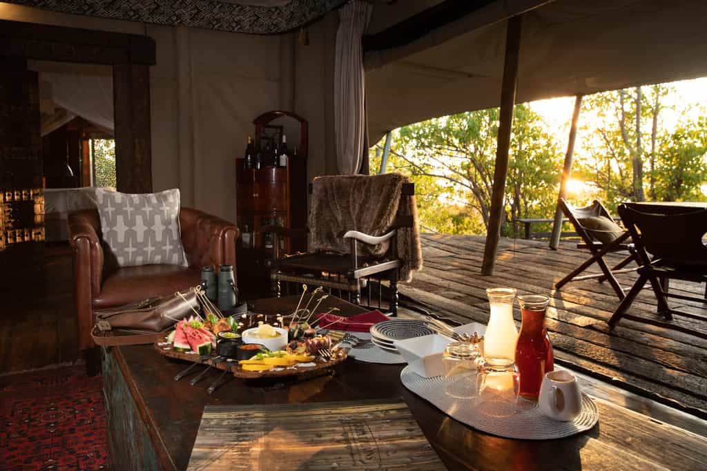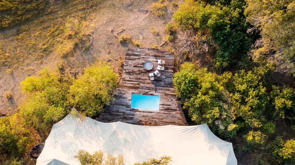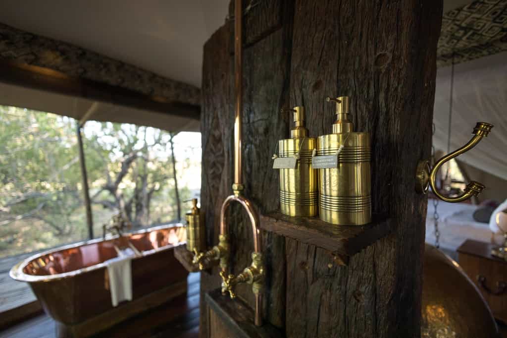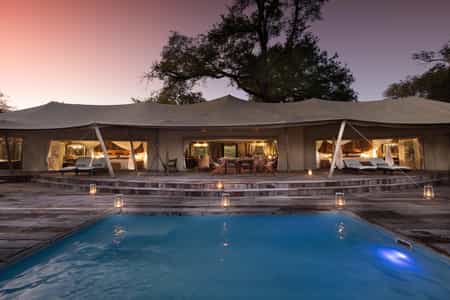 This intimate camp has just four luxurious tented suites, each beautifully furnished with a nod to colonial chic – leather couches, wooden floors and glorious copper bathtubs and indoor and outdoor showers. There's a central fireplace for cold nights, a private plunge pool for steaming afternoons, a king-sized bed and your own exercise equipment. Soak up the views – the tents overlook the waterway so the wildlife is at your doorstep, and darkness reveals the breathtakingly dramatic African night sky.
