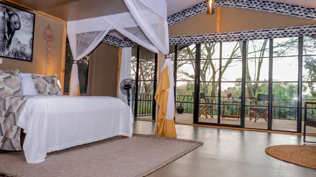 Zebra River Camp is a boutique luxury tented safari camp nestled in the forest along the bend of Talek river in Maasai Mara. The river and the forest under which the camp sits on is teeming with birdlife and hippos and crocodiles, and plains game on the other side of the camp.