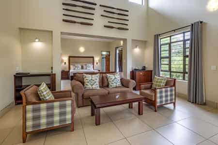 With buffet-style meals in the restaurant, the wide, welcoming veranda and the ‘human watering hole’ – the pub or thatched boma, warm and relaxing atmosphere is conducive to shared good times and conviviality.