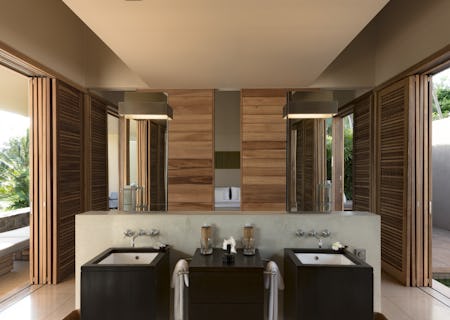 Uncluttered and with plenty of island chic, suites are crafted from local stone and timber with charcoal-coloured furnishings. Decorated in neutral, beige tones, there are glass doors to let natural light in as well as picture-perfect views of the sea. The pool suites have a plunge pool in private courtyards plus a terrace and outdoor dining area. The spa-like bathrooms come with a free-standing bathtub, monsoon shower twin vanities and a dressing area. Handy little details include beach mats, colourful rattan bags and the all-important mosquito spray.