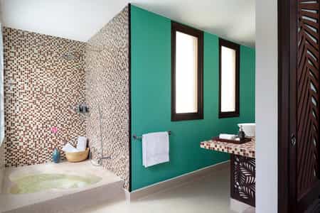 The rooms have a fresh and tropical feel with teal feature walls, floral cushions and palm-leaf doors. Decorated with one-of-a-kind photography by a local artist, the split-level deluxe rooms/suites have a lounge area with shelves of mismatched porcelains and large bed. They each have a balcony (with garden or river views) and the larger suites come with an alfresco dining area and nest swing. The bathrooms are neat and spacious with a rain shower, and the Anantara Suites have a gorgeous sunken tub. Other amenities include an espresso machine, ceiling fans and a TV.