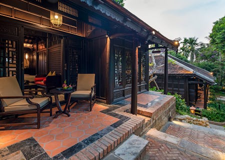 In total, the ancient wooden houses have eight rooms, all of which are authentic mimics of bygone Hue. Each room has a King-sized bed draped in silk, striking decor that illustrate the theme (from royal dress to paintings of characters from Hue's greatest poetry), and a large bathroom - some even with a Jacuzzi. The rooms were all influenced by Feng Shui, evoking a pleasing sense of harmony. A number of rooms have a kitchen and dining area for added privacy and each has a terrace.