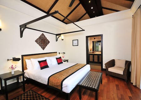 There are just 24 rooms and four suites at this boutique spot, each designed in a simple but sophisticated blend of traditional Asian and Laotian influences. Beds are bedecked with hand-woven silk headboards, and plenty of stylish rattan furniture sits atop the hardwood floors. All rooms and suites enjoy a private balcony, ensuite bathroom and WiFi. The suites have more space for lunging, and if you're travelling as a family or in a group, the Suite Mixay has two bedrooms.