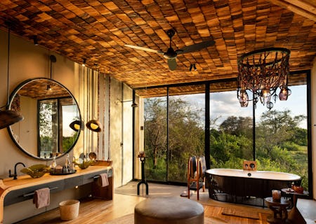 Appearing to float atop of the landscape, the 10 spacious suites (including a 2-bedroom family villa) are uber-stylish yet harness the feel of a safari camp with canvas walls and banana fibre ceilings. They are spread out along the river's edge, each with commanding views of the hippo-laden lagoon, from a private plunge pool no less. Sliding doors open on to private viewing decks where you can soak up the action, a view that's enjoyed from your bathtub too.