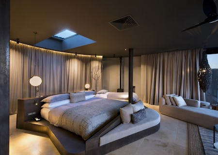 The ten air-conditioned desert villas blend in seamlessly with the environment. The colour palette reflects the beiges, grey and stone to be found outside. Each room has a king size bed with crisp white linen and a dramatic skylight for night-time stargazing. Also to be enjoyed are a wood burning fireplace, writers desk, marble ensuite bathroom with additional outdoor shower, a spacious lounge with comfy couches and a private terrace overlooking the moonscape.