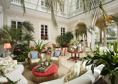 The rooms are pristine, decorated in pale cream and grey, with high, moulded ceilings and double-height windows. Even the most modest rooms are large, as are the marble-clad bathrooms, which all have a deep tub and shower. Art Deco furnishings, floral motifs and views over the courtyard or La Compania church finish the rooms perfectly. On the ground floor, two luxury rooms have private access to the flower garden and the first-floor Junior Suite is adorned with grand columns and an eye-catching mural.