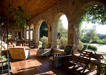 Honey-coloured sandstone arches open to the wide veranda that fronts the house. Here, from the dining area and comfortable couches, you overlook the manicured lawns. Indoors, there’s a formal dining room and a lounge with an open fireplace, and a staircase leading from the central hallway up to the guest rooms. The atmosphere is home-style relaxed and easygoing. The owners live here too, so you’ll feel like you’re part of the family right from the start. The pool is sublime...