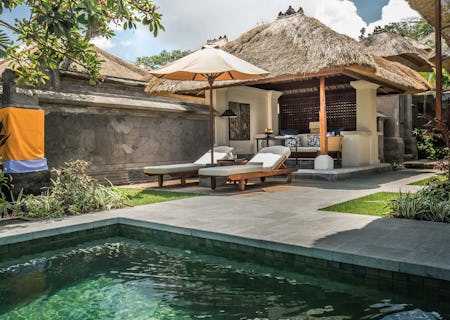 All villas are equipped with large, cloud-soft beds, and are adorned with Balinese antiques for a timeless style. All have their own pool and bale but range in size, from space for two to the enormous four-bedroom Residence Villa, which has a large pool and sun terraces, an open-air living area and a fully-equipped kitchen. The bathrooms are serene and spa-like with a huge soaking tub, indoor / outdoor showers and fluffy bathrobes. The largest villas also have a personal attendant who will see to every detail.