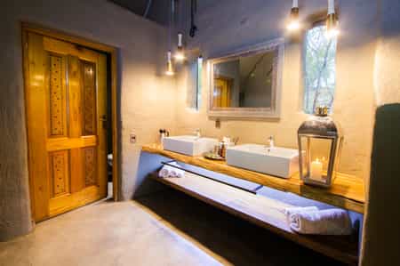 Activities include game drives where you may see anything from black rhino to African painted dog, wilderness walks (a favourite here), outdoor bush-baths and, at the spa, aromatherapy and reflexology sessions and the intriguingly named 'honeymoon couple instructional massage'. Sit back and enjoy the fresh bushveld air (not a petrol fume within range as the vehicles here run on bio-degradable fuel), or sleep out on a deck that overlooks the veld (with a hamper of delicious goodies, plenty to drink, a radio and a wash basin and toilet conveniently located nearby).