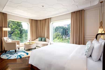 Designed according to Feng Shui, this futuristic hotel has a space for every occasion. Inspired by Vietnam's street food markets, the Saigon Kitchen offers wide palette of dishes to sample. The whimsical Cafe dex Beaux Arts serves high tea or aperitifs to the sound of a grand piano and the moody Social Club provides a hearty menu under 'potion bottle' lights. Enjoy a soothing massage at the award-winning spa or a soak in the glass-walled pool, before sipping on cocktails like 'Saigon by Night' at the bar.