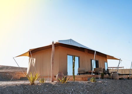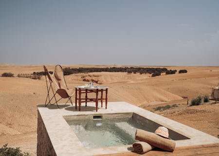 There is endless opportunity for exploring in the Agafay, from super adventurous camel rides and quad bike excursions to buggy trips and meandering walks with a local guide. Along the way, stop for picnics and take in the striking scenery. The Lalla Takerkoust Lake isn't far so a day of swimming and watersports is also possible. Then, there are the gentler pursuits like morning yoga and in-tent massages, or spending hours swapping between your lounger and the pool.