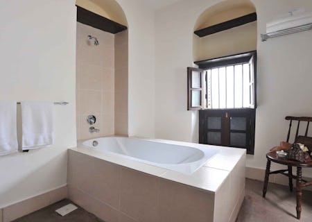 The steep, rather grandly carved wooden staircase leads to nine en-suite rooms, ranging in size from the simple Burdani rooms to the large Sulaima suites. All are beautifully decorated to combine traditional Swahili decor (including brass-studded doors) with the latest in European style. Wooden beams run across the ceilings, plush Persian rugs are scattered around modern desks and lounge chairs. There are no balconies, but most rooms have traditional barred windows that open to reveal views of the streets below.