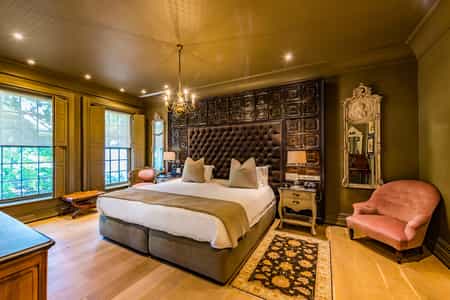 There are several dining areas, including a large restaurant that serves a mixture of local and international cuisine, an open-air garden terrace, the palatial Governor's Hall with its magnificent marble fireplace and Esquire Bar, where whisky and cigars are the after-dinner standard. Whichever your fancy, Lanzerac's award-winning wines are the order of the day. Antique artworks and grand wooden furnishings create a presence throughout the hotel. The library offers a cosy nook to read, and the spa has no fewer than seven therapy rooms, a sauna and steam room, and a heated indoor pool.