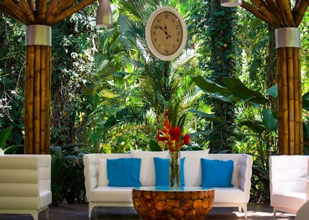 The interiors are pristine, minimalist and entirely white, accented by bright textiles and diverse artwork. The rooms located on the upper floor feature a private patio, while many of the suites on ground level boast garden views and are often much closer to the pool. Or check into the Ocean Suite and check out the stunning views of the Caribbean from your bed. The bathrooms are well-appointed with a rain shower, while Le Caméléon Suite enjoys a soaking bathtub.