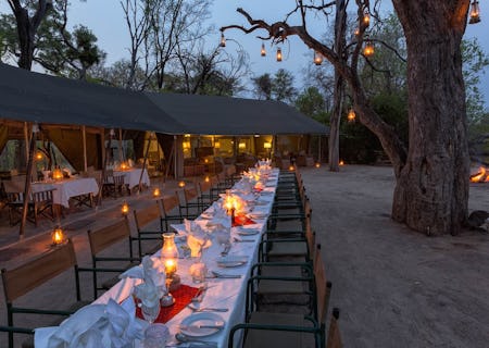 Machaba Camp is tucked away on the sycamore fig-sheltered bank of the Khwai River to the east of the Okavango Delta. Here, 10 stunningly luxurious tents provide tranquil comfort to visitors returning from a day in the delta. The camp overlooks the river to Moremi Game Reserve, where thick wooded areas are the perfect habitat for leopard and abundant wild dog. From the tent, watch predators and plains game wandering down to the river to drink, and inspect the diverse birdlife in the surrounding lagoons.