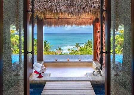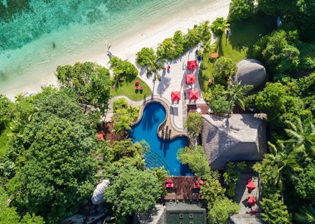 Unwind in Bill Bensley designed villas that combine rustic elements of hammered copper with elegant soft furnishings. Soak up some rays by your endless infinity pool or stroll onto the secluded beach. Experience our ‘Beyond All Inclusive’ package to dine wherever, whenever and personalise your meals with our chef. Wander through the flowered gardens for tranquil moments or let the gentle breeze accompany a signature therapy at Anantara Spa. Immerse yourself in exquisite luxury at Anantara Maia Seychelles Villas.